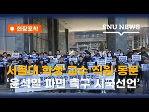 11일 (화) 오후 12시 30분, 행정관(60동) 앞에서 윤석열 대통령의 신속한 파면을 촉구하는 공동 시국선언이 진행됐습니다. 서울대 학생·교수·직원·동문 등 학내 구성원 40여 명이 참여한 시국선언 현장이 궁금하다면? [현장포착] 시국선언 편에서 확인하세요!