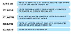 자기 자신을 소개할 때 빠지지 않는 요소들이 있다. 이름, 나이, 그리고 직업. 이처럼 우리에게 노동은 단순한 돈벌이 수단을 넘어 정체성의 일부이기에, 노동시간은 우리의 시간을 정의하는 거대한 축이다. 그렇다면 우리는 우리의 시간을 주체적으로 정의하고 있을까? ‘노동과 시간 주권’ 연재에서는 장시간·경직적 노동이 만연한 한국 사회 속 노동시간에 잠식당한 우리의 24시간을 돌아보고, 노동자가 잃어버린 ‘내 시간’을 되찾을 방안을 모색한다.지난해 3월 “근로시간에 대한 노사의 ‘시간 주권’을 돌려주는 역사적인 진일보”라는 정부의 구호와
