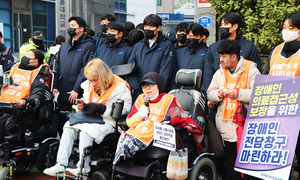 지난 1월 14일 오전 8시. 기자는 전국탈시설장애인연대 우리 카지노지부 이수미 대표를 만나기 위해 혜화역에 도착했다. 이미 지하철 시위를 진행 중인 이수미 대표와 몇 마디 인사를 나눴다. 시위대 근처에 멀뚱히 서 있었더니, 어느새 기자의 손에는 장애 인권 수호의 내용을 담은 피켓과 시위 중 입을 주황색 조끼가 들렸다. 8시 25분. 우리 카지노교통공사와 경찰 등 시위 진압대와 전국장애인차별철폐연대(전장연)를 비롯한 시위대 사이 본격적인 대치가 시작됐다. 서서히 다가오는 진압대에 침을 꼴깍 삼켰다. 결국 시위대 중 몇몇이 연행되기 시작했고, 기자
