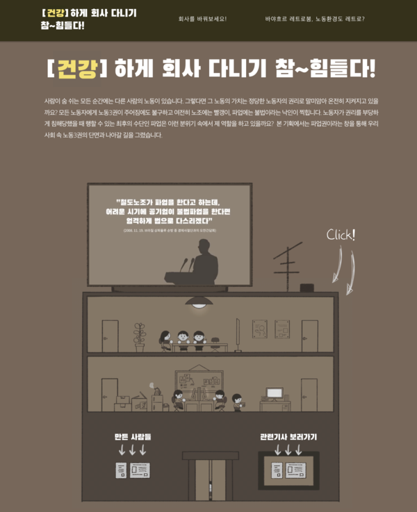 제2070호(2023년 5월 8일 발행)부터 제2073호(2023년 5월 29일 발행)까지 네 차례에 걸쳐 연재된 「노동3권 잔혹사」의 인터랙티브 웹페이지가 공개됐다.