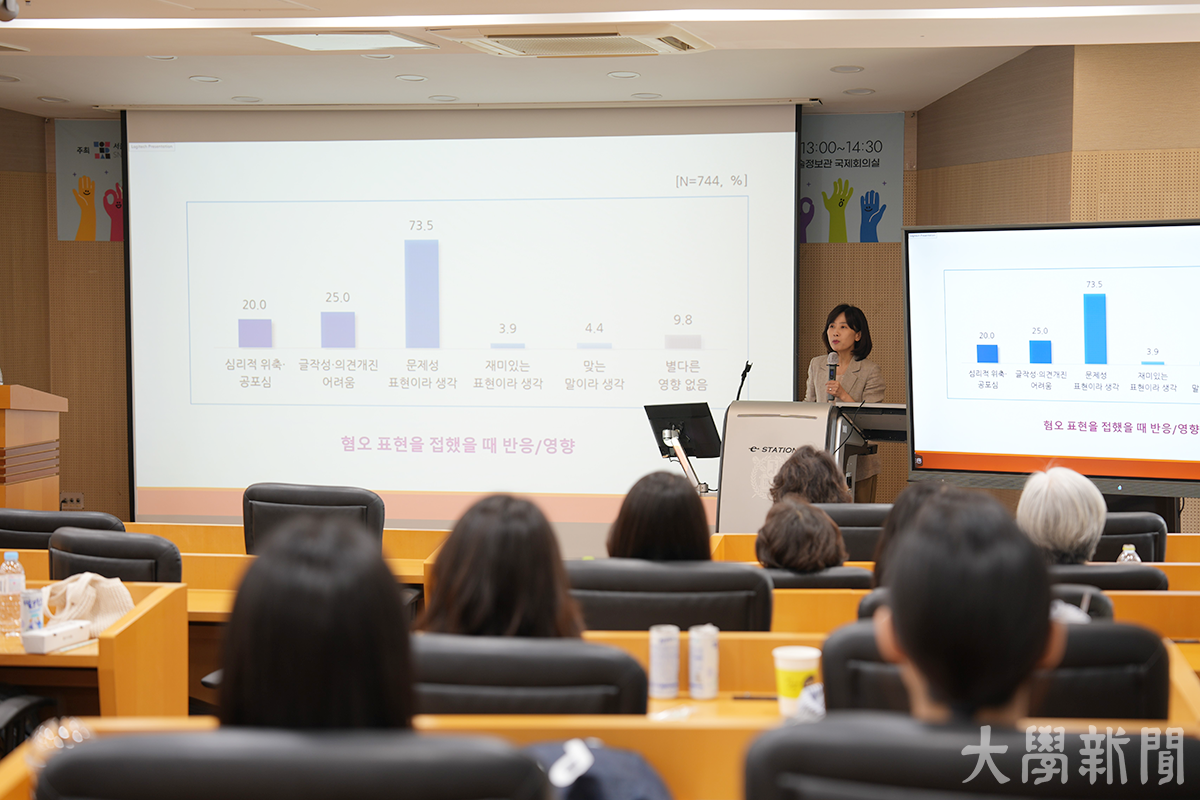 기자는 22일 신양인문학술정보관(4동)에서 진행된 이은주 교수(언론정보학과)의 강연에 참석했다. 이 교수는 온라인 기사나 댓글 등에서 나타나는 혐오 표현과 그것을 조장하는 사회적 분위기에 관한 자료를 토대로, 혐오 표현이 발생하는 원인과 우리에게 미치는 영향을 설명했다. 그는 강연 중 “우리는 소통을 통해서 혐오를 키울 수도, 혐오를 해결할 수도 있다”라며 소통의 양가성을 강조하기도 했다. 이 교수는 “인권과 직결된 인간의 존엄성에 대한 감수성을 유지하고 그것에 민감해져야 한다”라고 플러스 카지노성을 대하는 태도를 강조하며 강연을 마무리했다.