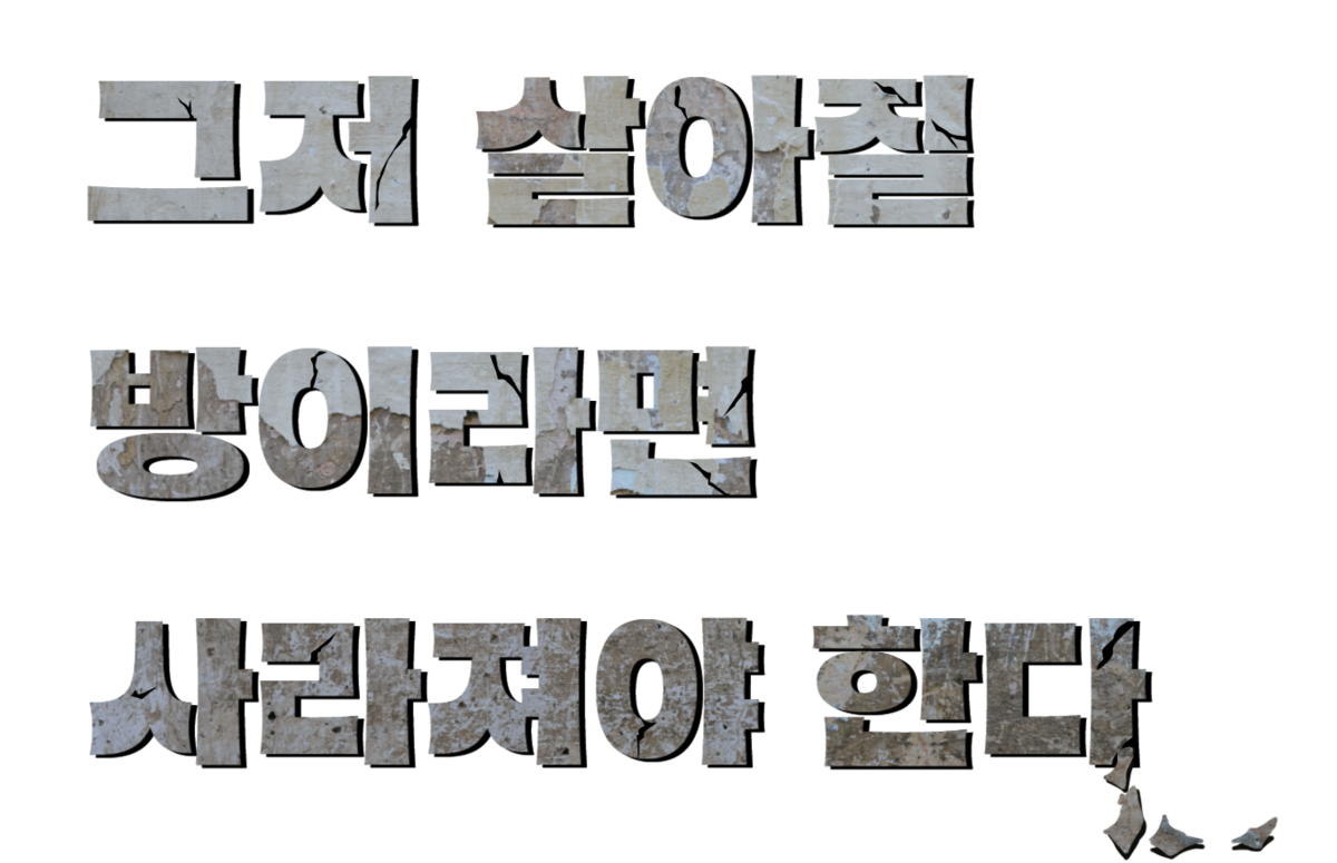 지난 1월 방문했던 두 원룸의 문턱을 상상 속에서 수없이 들락거렸다. 그새 닳아 없어진 문지방의 부피만큼 마음속에 응어리가 생겼다. 힘껏 까만 활자들로 녹여내고는 무연히 응시했다. 활자들은 이내 가장자리부터 번지더니 어느새 방울진 곰팡이 군락으로 변했다. 그곳에 살고 있을 누군가, 괜찮을까. ‘주거기본법’ 개정으로 일어날 변화의 물결은 더 큰 변화의 시발점에 불과해야만 한다. 물결이 언젠가 불량한 주거들을 전부 휩쓸 해일로 이어질 수 있도록, 사회의 관심이 절실한 시점이다.